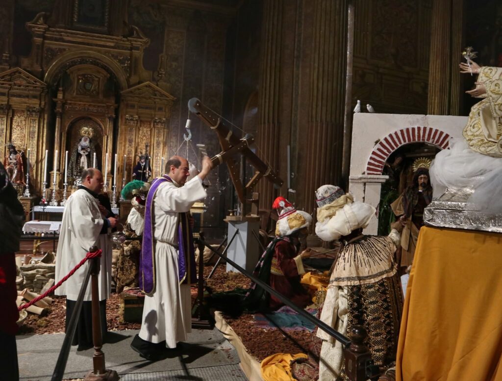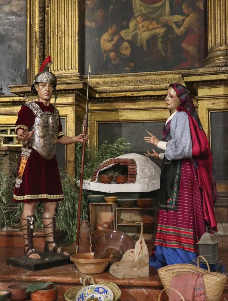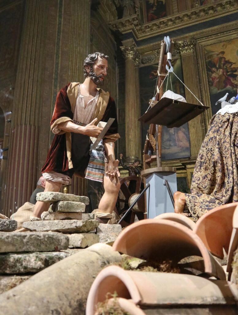 Junto a las figuras propias de la Hermandad, el Belén incorpora este año las imágenes secundarias de nuestra Agrupación Parroquial, cedidas expresamente para enriquecer el montaje y contribuir a su mayor realce.