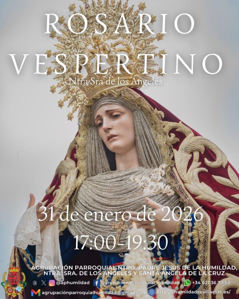 El próximo 31 de enero, con motivo de la festividad de la Candelaria, tendrá lugar el Rosario Vespertino de Nuestra Señora de los Ángeles, que recorrerá las calles de nuestro barrio en horario de 17:00 a 19:30 horas.