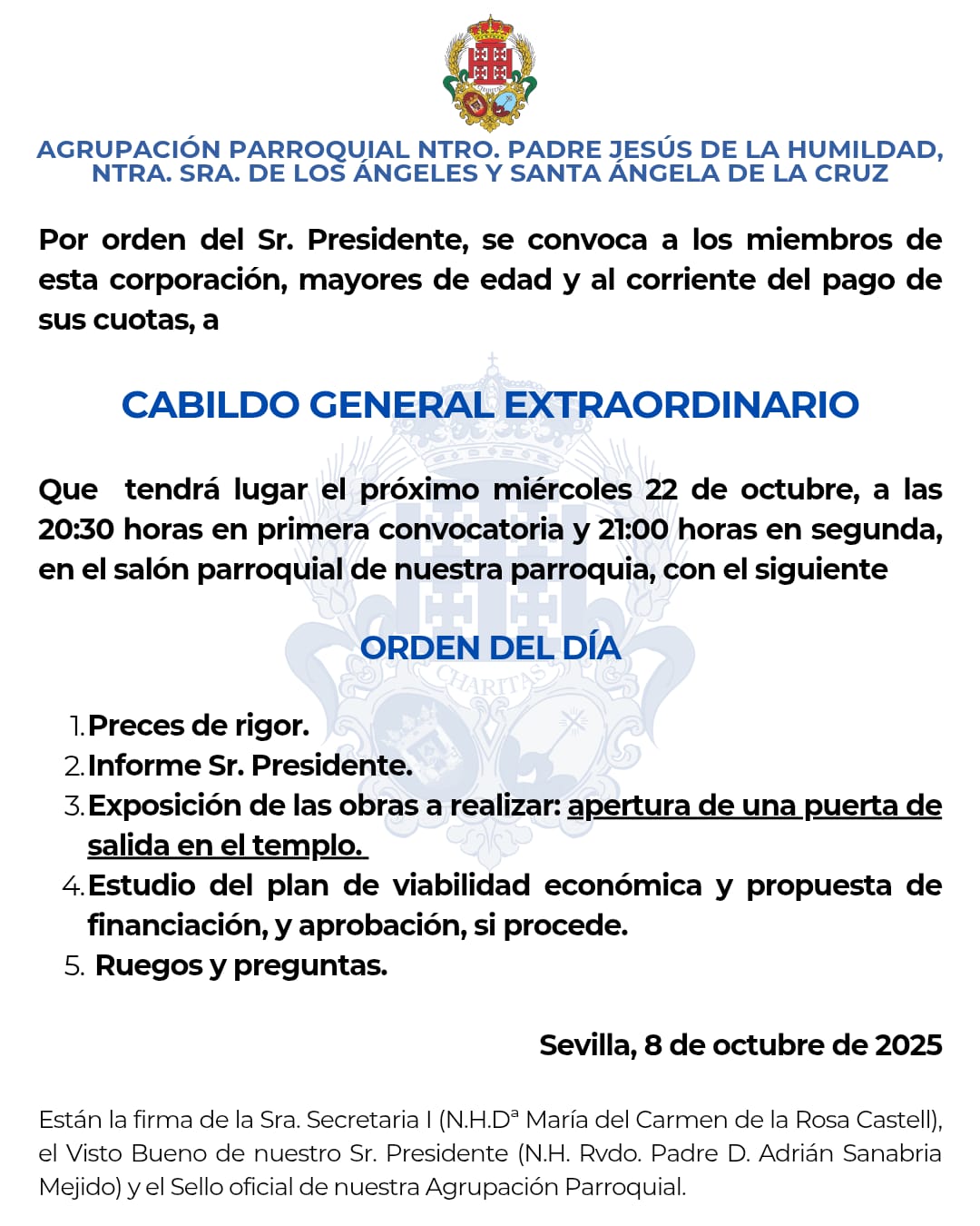 CONVOCATORIA CABILDO GENERAL EXTRAORDINARIO